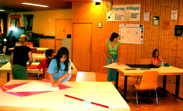 18 Jungen und Mädchen im Alter von 8-10 Jahren kamen zum HSE um jetzt schon ihren Drachen zu basteln, damit sie ihn im Herbst gleich steigen lassen können. Nach einer kurzen Erklärung für den Aufbau eines selbst gebastelten Drachens wurde mit dem ersten Schritt der aufwendigen Lattenkonstruktion begonnen. Mit viel Fingerspitzengefühl und einer großen Ausdauer gingen die Jugendlichen ans Werk. Während ein Teil der Jungen und Mädchen sich mit der Lattenkonstruktion beschäftigten, schnitten die anderen nach einer Schablone das Drachenpapier aus. Nach der Befestigung des Drachenpapiers auf die Lattenkonstruktion wurde die Drachenschnur angebracht, das Gesicht aufgeklebt und zum Schluss der Drachenschwanz angeknotet. An dieser Stelle bedankt sich der Harmonika-Spielring Ettlingen bei allen Jungen und Mädchen für ihr Kommen und wünscht eine erfolgreichen "Drachenflug". Ein herzliches Dankeschön geht auch an alle freiwilligen Helfern an diesem Nachmittag. |