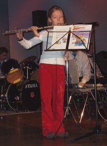 | Während das musikalische Weihnachtsprogramm mit "Rudi Rentier" fortgesetzt wurde, verabschiedete sich St. Nikolaus. Nach dem Stück "Air" verlas Monika Link eine Weihnachtsgeschichte "Vom Engel, der aus den Wolken fiel".
