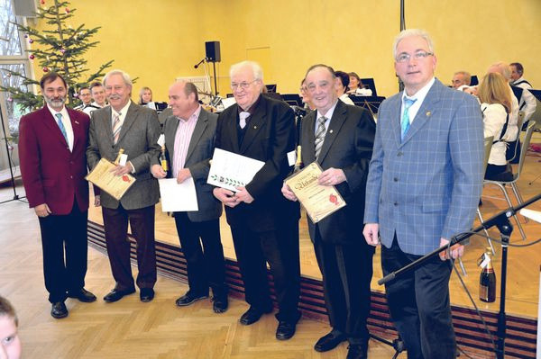 | Am 3. Adventsonntag fand die traditionelle Weihnachtsfeier des HSE im Kasino der ehemaligen Rheinlandkaserne statt. Das 1. Orchester unter der Leitung des Dirigenten Bernd Steinbrenner eröffnete mit "Malaga" das Programm. Bernhard Link - 1. Vorsitzender - begrüßte alle Mitglieder, Freunde und Bekannte des Vereins zu der letzten Veranstaltung im 75-jährigen Jubiläumsjahr. Einen ganz besonderen Willkommensgruß galt: Dem Ehrenvorsitzenden Fritz Wandres mit Gattin, den Ehrenmitgliedern Hubert Geyer mit Gattin, Klaus Röper, Franz Melischko mit Gattin, der Ehefrau des Dirigenten Margret Steinbrenner sowie dem Bezirksvorsitzenden des Deutschen Harmonika-Verbandes - Bezirk Mittelbaden - Manfred Kappler. Nach dem Stück "Ich gehör nur mir" konnte Bernhard Link folgende Vereinsehrungen durchführen. Geehrt wurden: Josef Puschmann für 25-jährige Vereinszugehörigkeit mit einer Urkunde und der "Silbernen Vereinsnadel", Roland Haas für 40-jährige Vereinszugehörigkeit mit einer Urkunde und der "Goldenen Vereinsnadel", Erhard Schlager für 50-jährige Vereinszugehörigkeit und Ehrenvorsitzender Fritz Wandres für 60-jährige Vereinszugehörigkeit jeweils mit einer Ehrenurkunde. |