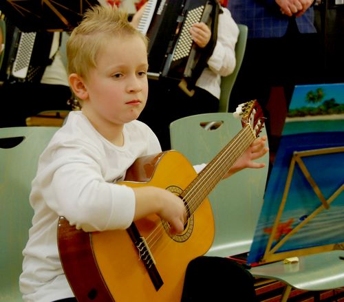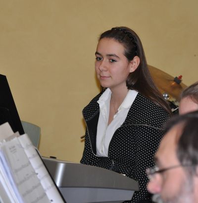 Das 1. Orchester eröffnete nach einer kurzen Umbauphase mit den Stücken "Feliz Navidas und "Weihnachtssterne" den weihnachtlichen 2. Teil. Nach dem gemeinsamen Weihnachtslied "Süßer die Glocken nie klingen" hatten die Spielerinnen und Spieler vom Unterricht, die schon zu Beginn des 2. Teils zusätzlich auf der Bühne Platz genommen hatten ihren Auftritt. Mit den Stücken "Morgen kommt der Weihnachtsmann" und "Alle Jahre wieder" hatten einige zum ersten Mal Bühnenpremiere. Sie wurden begleitet von Christina Fliegauf auf dem Keyboard und Ann-Sophie Reiser auf der Querflöte. |