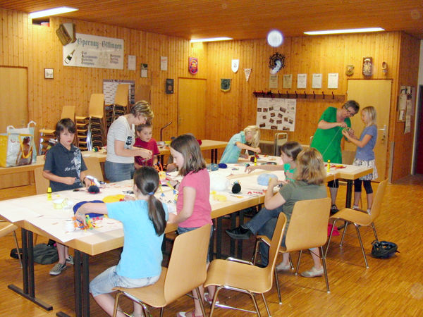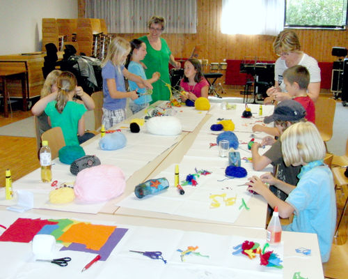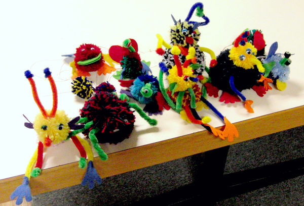 | Am 31.07.2010 fand der diesjährige Ferienpass beim HSE unter dem Motto "Die Außerirdischen kommen" statt. Die Jungen und Mädchen wurden damit überrascht, was man aus flauschigen Bällen "Pompons" alles machen kann. Nach der Auswahl der Wollfarbe wurde kräftig gewickelt. Danach mussten die ausgesuchten Schablonen auf Filz aufgezeichnet und ausgeschnitten sowie die Pfeifenputzer eingearbeitet werden. |