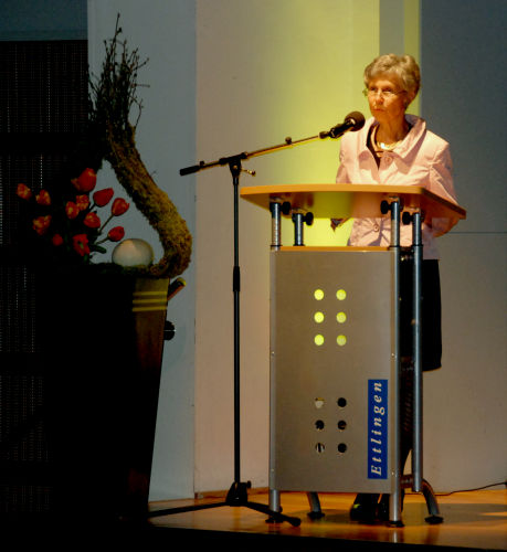 Nach dem ersten Stück "Walzer Nr. 2" von Schostakowitsch übernahm das Mikrofon Frau Margret Steinbrenner, sie führte an diesem Abend die Konzertbesucher durch das Programm. |