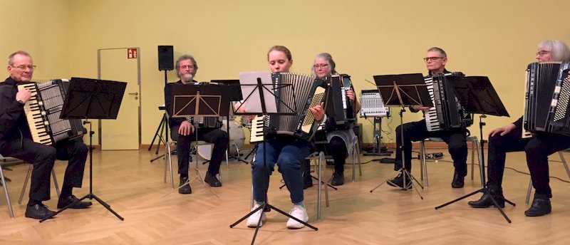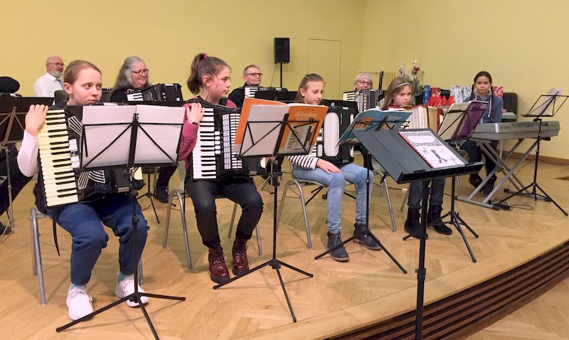 Sie spielten für die Gäste jeweils ein Solostück vor und wurden mit einem begeisterten Applaus von den Gästen belohnt. Die vier Mädchen mit dem Akkordeon spielten im Anschluss ein gemeinsames Musikstück. Danach wurden alle Solistinnen mit einer Süßigkeit von Bernhard Link überrascht. Nach weiteren weihnachtlichen Musikstücken und gemeinsam gesungener Weihnachtslieder bekamen die Unterrichtsteilnehmerinnen, sowie Bernd und Margret Steinbrenner ein Präsent. Alle aktiven Mitglieder vom HSE bekommen in diesem Jahr einen kleinen Zuschuss beim gemeinsamen Abendessen im Neuen Jahr.
