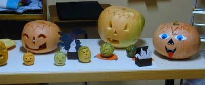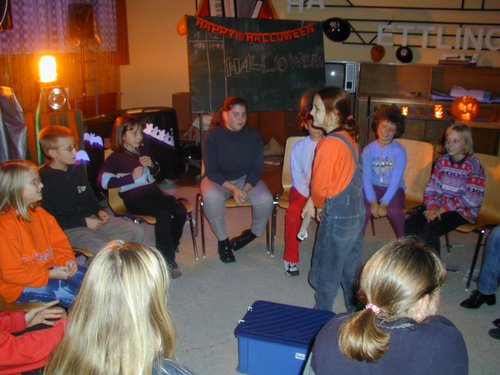 | Kurz vor Halloween, fanden sich 15 Kinder und Jugendliche am 27. Oktober zur zweiten Halloween-Party im Proberaum, ein. Am großen Basteltisch wurden Papierkunstwerke geschaffen: Kleine Hexen, Kürbisse, Vampire und Geister. Aus Maiskolben wurden lustige Männchen gebastelt und die mitgebrachten Einmach- und Marmeladengläser wurden mit Seidenpapier zu schaurigen Kürbisgesichtern verwandelt. |