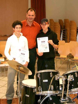 | Am 29.-30.01.2005 hatten Milena Tomaschko und Markus Link an einem Percussion-Workshop des Deutschen Harmonika Verbandes e. V. - Bezirk Karlsruhe-Nordbaden-Enzkreis - teilgenommen. Dieser Workshop wurde in den Räumen des "Harmonikaring-Berghausen" von Herrn Wolfgang Schmitz - Lehrer für Schlaginstrumente am Hohner-Konservatorium in Trossingen - durchgeführt. |